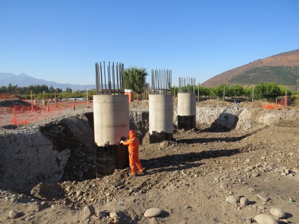 Los trabajos son ejecutados por la Dirección de Vialidad del MOP; ya se han instalados 16 pilotes de las 5 primeras cepas de la nueva estructura sobre el río Aconcagua.