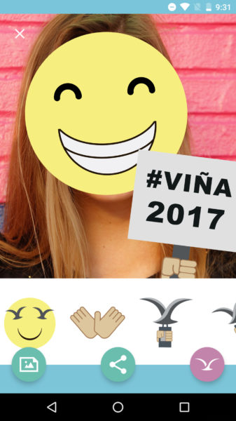 Los espectadores del Festival de Viña podrán compartir las diferentes emociones que les provoca el evento usando la aplicación móvil Sanpfest Viña 2017, que permite a los usuarios crear selfies, sumarle emojis Viña 2017 y concursar en vivo por diferentes premios.