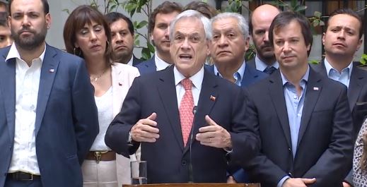 “Como tantas otras veces lo hemos hecho, juntos y unidos vamos a transformar estos tiempos difíciles en una gran oportunidad no solamente para recuperar y reparar el daño que esta ola de violencia y vandalismo ha producido, sino que también una gran oportunidad después de escuchar a los chilenos para construir una patria más libre más justa más solidaria y más próspera”, finalizó el mandatario.