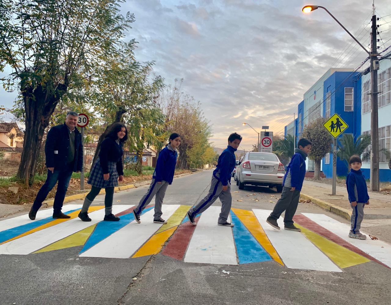 Diferentes colores tomaron el protagonismo en las calles de Limache y no por cualquier motivo. Se trata del primer paso peatonal amigable con la infancia, el cual, entre azul, amarillo, rojo y verde busca llamar la atención de los conductores en los puntos donde se encuentran las escuelas y colegios de Limache, con el fin, de hacer sentir más seguros a los estudiantes de la comuna.