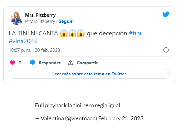 En tanto, usuarios de diversas redes sociales criticaron la actuación de la argentina Festival de Viña del Mar 2023, principalmente por su manera de interpretar.