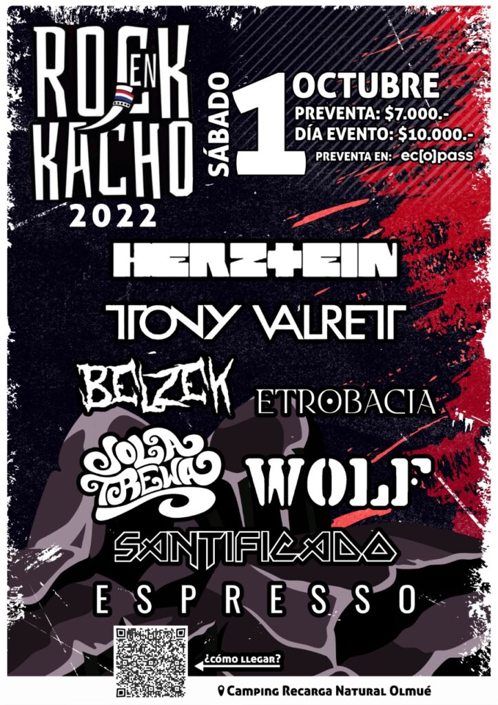 Según explicó el músico y productor del festival Óscar Sagredo, “Rock en Kacho” es uno de los festivales de rock y metal más importantes de la Quinta Región. Después de largos años de pandemia, este 1 de octubre por fin tendremos nuestro memorable regreso, con bandas como Espresso, Wolf, Belzek, Tony Valret y por supuesto, vamos a cerrar con toda la parafernalia, con la pirotecnia y fuego de Herztein, tributo a Rammstein, así que está imperdible. Los esperamos en Rock en Kacho”.