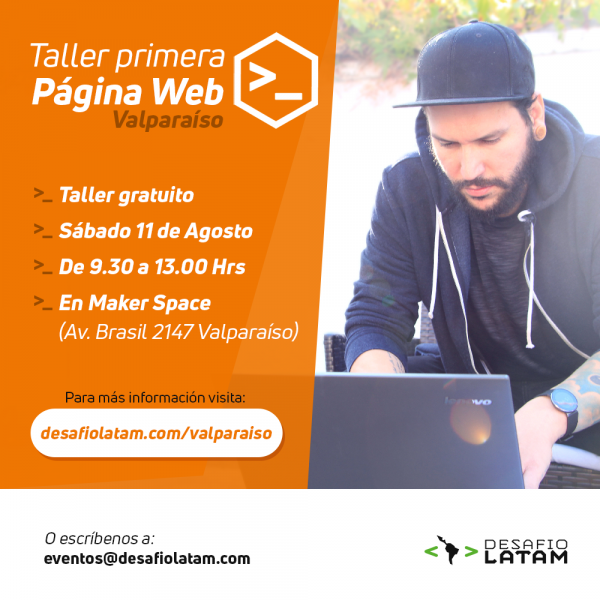 La actividad se desarrollará el sábado 11 de agosto, entre las 09:30 y las 13:00 horas, en el Valparaíso Maker Space, ubicado en Av. Brasil #2147, Valparaíso. Para participar debes inscribirte en: http://desafiolatam.com/valparaiso/taller-html-css/