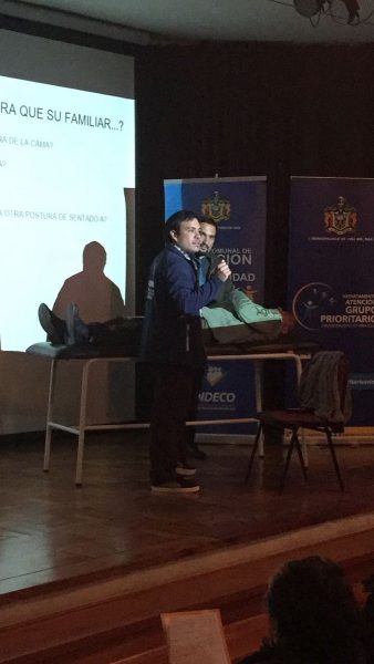 Claudio López, kinesiólogo, indicó que “para nosotros es muy importante entregar estos conocimientos a los cuidadores, quienes muchas veces son los principales afectados, ya que esta labor requiere un compromiso tanto físico como psicológico. Nosotros enseñamos ciertas técnicas para que ellos cuiden su parte física y emocional porque deben contar con una estabilidad emocional que puedan transmitirle a la persona que se encuentra en situación de inmovilidad”.