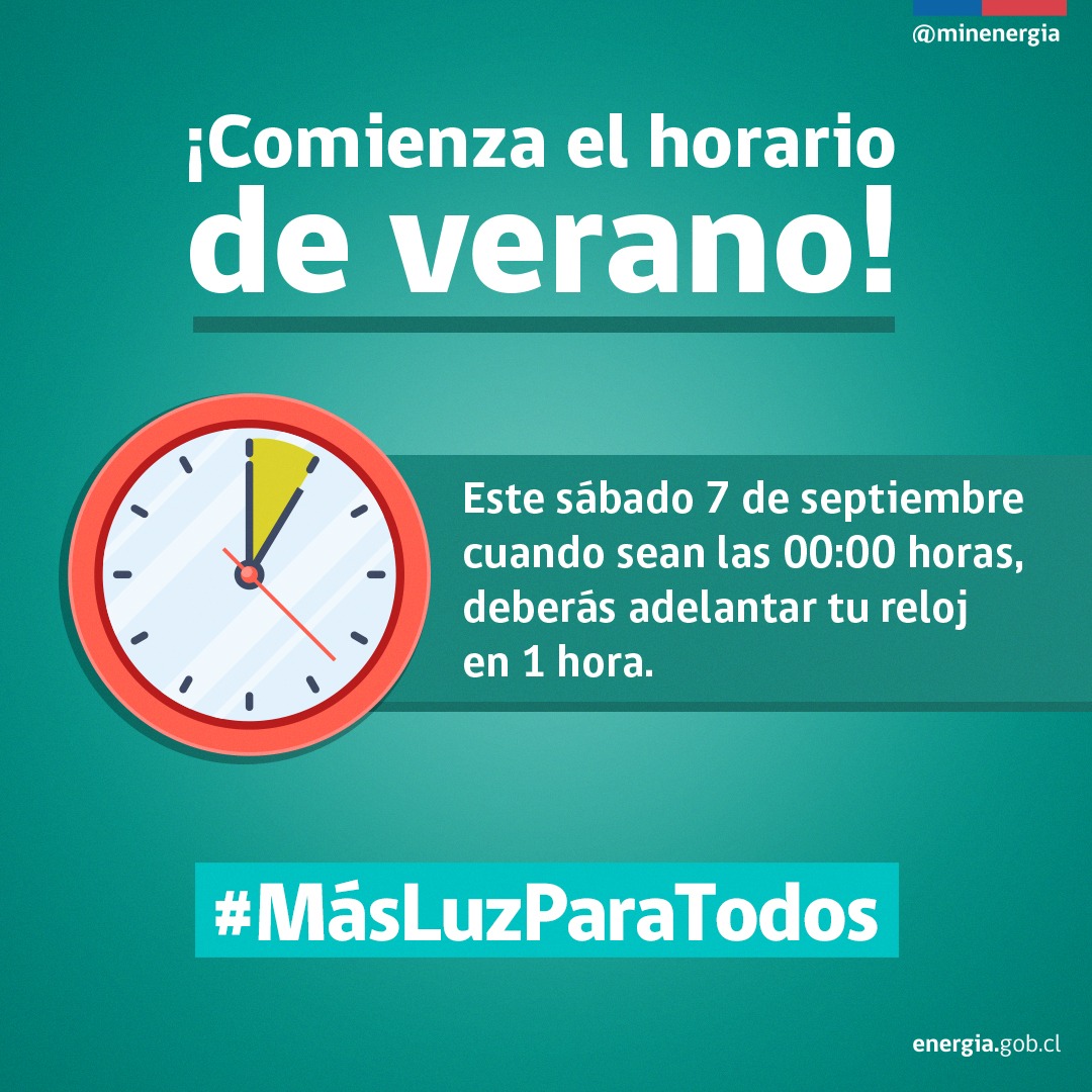 “A contar de este sábado 7 de septiembre a las 00 horas comenzamos el horario de verano, que nos va a permitir tener más luz para aprovechar de mejor manera el día, lo que permitirá facilitar las actividades familiares, sociales y recreativas, y por ende, mejorar la calidad de vida de las personas” destacó Le Dantec.