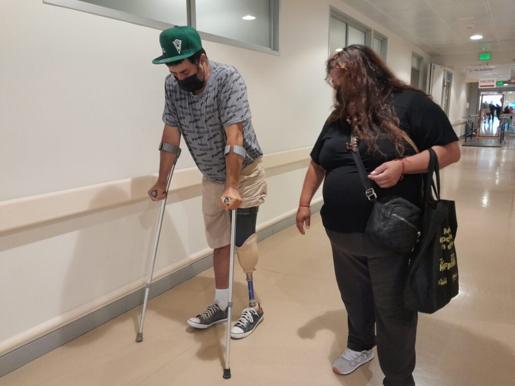 Como advierte Darwin, estrenando su prótesis, “ahora viene la otra etapa de la recuperación, hay que saber caminar con la prótesis, saber desplazarse en un lugar complicado, bajar escala, subir escala, ya tener pasos más ligeros, y dejar la muleta a un lado, porque la meta es dejar la muleta a un lado y caminar solo con la prótesis. Es lo ideal y es lo que se va a hacer con la ayuda de los profesionales aquí.