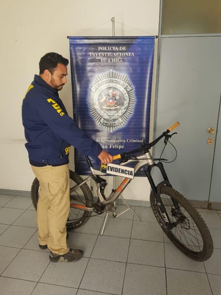 La Brigada de Investigación Criminal San Felipe de la PDI de Chile logró recuperar una bicicleta marca Gravis, modelo Rodeo AL3 avaluada en más de dos millones 300 mil pesos, la que había sido sustraída junto con otras especies, desde una tienda deportiva de Las Condes, el pasado 11 de septiembre.