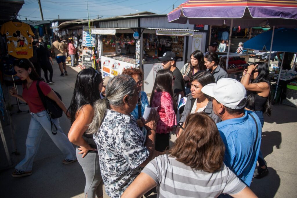 La alcaldesa Valeria Melipillan llegó hasta la feria para conversar con las locatarias y locatarios, oportunidad en la que reiteró su posición y la del Municipio Abierto.