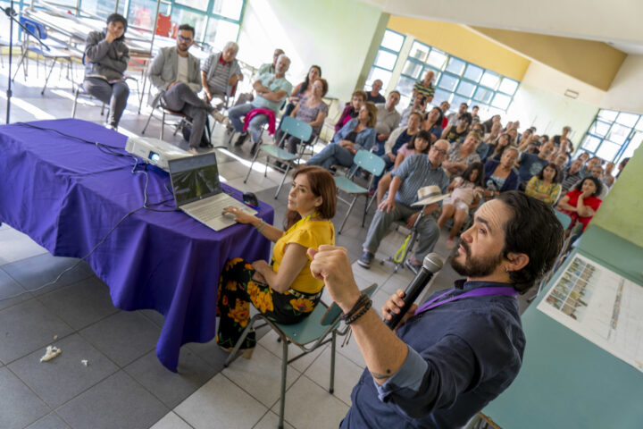 En esta instancia de participación ciudadana, los equipos expusieron la propuesta renderizada de forma preliminar, presentando las ideas generales de intervención y abriendo la palabra para que vecinos y vecinas entregaran sus opiniones y observaciones al proyecto.