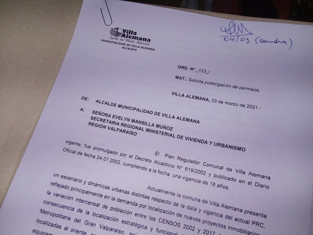 En tanto Alejandro Vives, director de la Dirección Ambiental Municipal de Villa Alemana, explicó que: “tenemos que esperar la resolución, si nos hacen observaciones, realizaremos las modificaciones correspondientes. Cuando eso se apruebe nosotros podremos hacer una postergación de los permisos”.