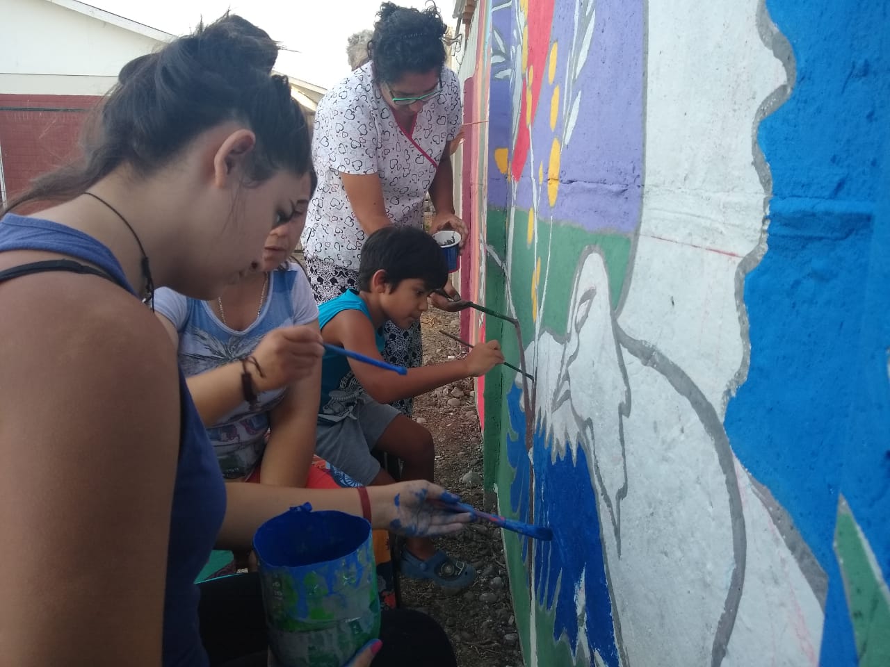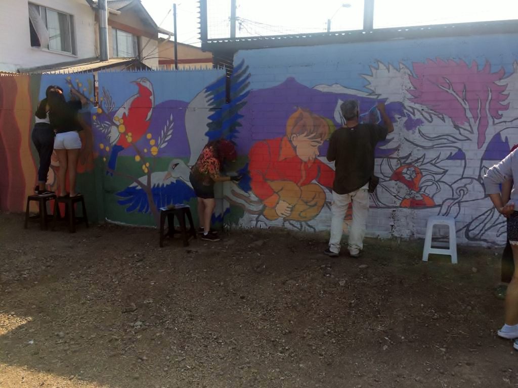 Según explicó Cristina González, directora del recinto, este proyecto comenzó su ejecución en diciembre del año pasado en la Villa Las Palmas, comunidad que accedió a realizar el mural gracias a la coordinación que realizó la presidenta de su junta de vecinos, Ángela Valencia Jorquera, facilitando una parte del muro que se encuentra en calle La Espuela, frente a la cancha del sector.