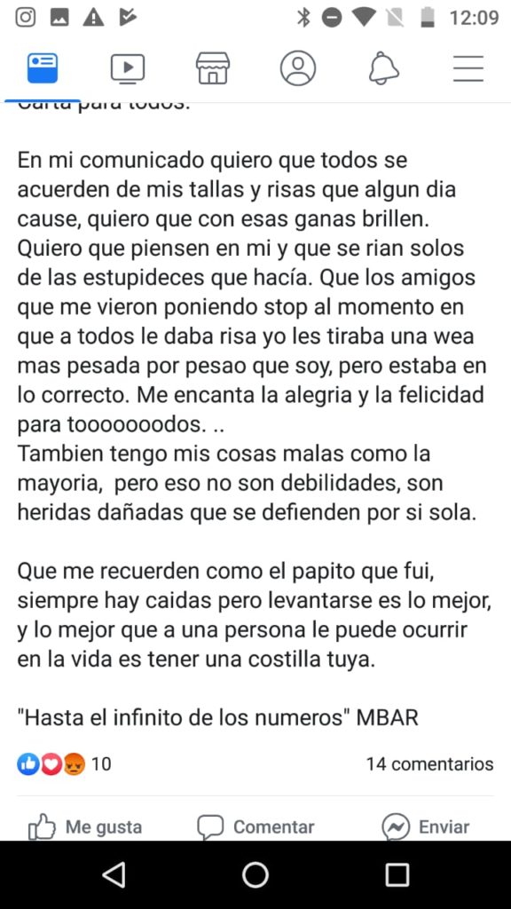 Antes del mediodía, fue la última vez que su compañero supo de él y ese mismo jueves 5, Guillermo dejó el siguiente mensaje en Facebook: