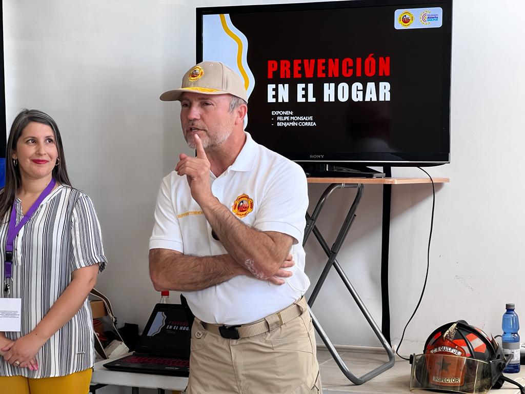 “Son talleres o encuentros donde, a través de la junta de vecinos, entregamos “tips” para que puedan tomar algunas medidas de prevención y saber qué hacer y qué no hacer en caso de alguna emergencia en el hogar (..) a veces las personas no saben qué hacer o cómo reaccionar y lo primero es tratar de mantener la calma, cuando, por ejemplo, si hay una inflamación de un sartén, una olla que se esté quemando, lo que no hay que hacer en este caso es tirar agua, sino que ahogar el fuego. Me explico, si el sartén está inflamado, basta con una tapa, taparlo y con eso elimino uno de los componentes del fuego, que es el oxígeno y con eso se termina la combustión. Eso es como un ejemplo básico.”
