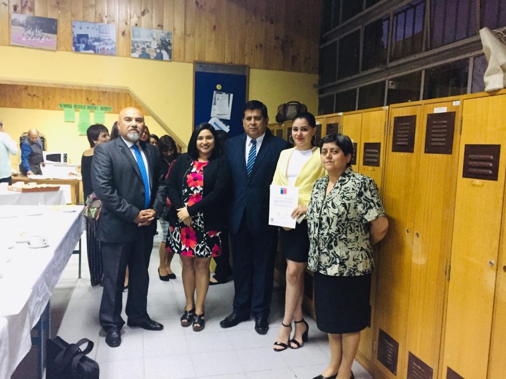 Director del Liceo Walter Arancibia, Karen Julio ( funcionaria IPS que colaboró siempre con la alumna), Alcalde de la comuna Santa Maria Claudio Zurita Ibarra, Maria Cartagena ex alumna en Práctica, y la profesora Encargada Adela Yanca.