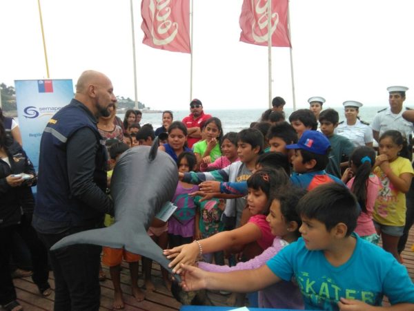 En la actividad, el médico veterinario encargado de la Unidad de Rescate de Animales Marinos de Sernapesca, Mauricio Ulloa, ofreció un didáctico taller, insistiendo en que lo primero es llamar a los servicios especializados y ejemplificando algunas acciones con un prototipo de delfín chileno. “Los delfines varados nunca deben ser arrastrados de la cola para devolverlos al mar, ya que eso causa un daño en su columna. Tampoco deben ser manipulados sólo se recomienda mantener alejados perros y darles sombra mientras llega ayuda capacitada”, recomendó.