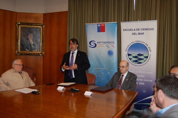 Por su parte el rector de la Pontificia Universidad Católica de Valparaíso destacó que “este convenio reviste gran importancia para poder trabajar con el Servicio Nacional de Pesca y todo lo relacionado a los distintos aspectos asociados a los recursos marinos y a la actividad y al quehacer que desarrolla la Escuela de Ciencias del Mar; vinculadas a la formación del recurso humano, investigación, vinculación con el medio, en los temas asociados al área marítima en particular y al tema de los recursos pesqueros. Yo creo que es muy importante poder sumar fuerzas y trabajar conjuntamente con el Servicio Nacional de Pesca y Acuicultura”.