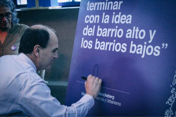 El objetivo de la instancia fue promover el desarrollo de ciudades integradas en el país, la fundación conformó una comisión de 16 expertos en materias de políticas públicas urbanas. Tras más de dos meses de trabajo, TECHO Chile invitó al ministro Monckeberg a ser parte de un conversatorio sobre integración junto voluntarios y líderes comunitarios de campamentos y villas de block de la región Metropolitana.