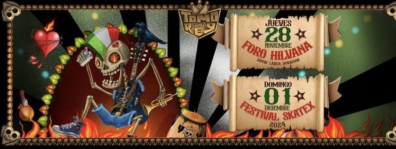 Ahora, acercándose el fin de año, Tomo Como Rey anuncia su séptima gira por México, para realizar difusión y dos interesantes shows. Un primer concierto será el día 28 de noviembre en el conocido Foro Hilvana y posteriormente se concretará su esperada actuación en el Festival Skatex, una cita de gran importancia, pues es considerado como el festival más grande de ska y géneros afines en el mundo, con una convocatoria que se proyecta en cuarenta mil asistentes en sus dos días de actividad. Tom Como Rey será la única banda chilena que se presentará en esta última edición. El grupo alternará junto a destacadas bandas, tales como The Skatalites, Panteón Rococó, Los Auténticos Decadentes, Los Calzones y 2 Minutos, entre otros grandes números del ska latinoamercano. Sin duda la invitación a este evento sella años de estrecha relación con la escena y el público mexicano, y es un reconocimiento al trabajo de Tomo como Rey en México.