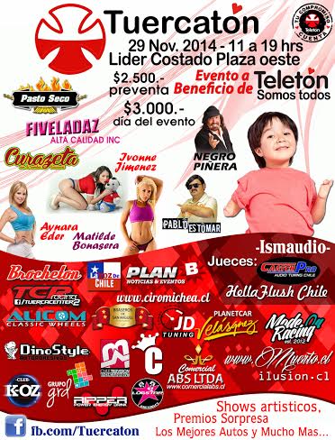 Todos los Clubes y teams tuercas se juntan en un solo Evento Solidario. Esperamos el apoyo de todos para lograr superar La meta este 29 de Noviembre en el Estacionamiento del Lider que se encuentra ubicado a un costado del Mall Plaza Oeste.