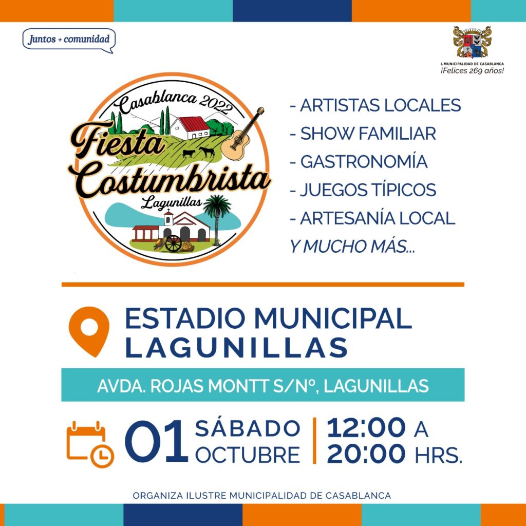 Esta fiesta, que celebra las tradiciones y la cultura local, forma parte del Programa de Turismo de la Municipalidad de Casablanca, que busca poner en valor el patrimonio cultural y rural de la localidad de Lagunillas, a través de su gastronomía y artesanía. A su vez, será el hito que marcará el inicio del mes de aniversario en la comuna que cumple 269 años el próximo 23 de octubre.