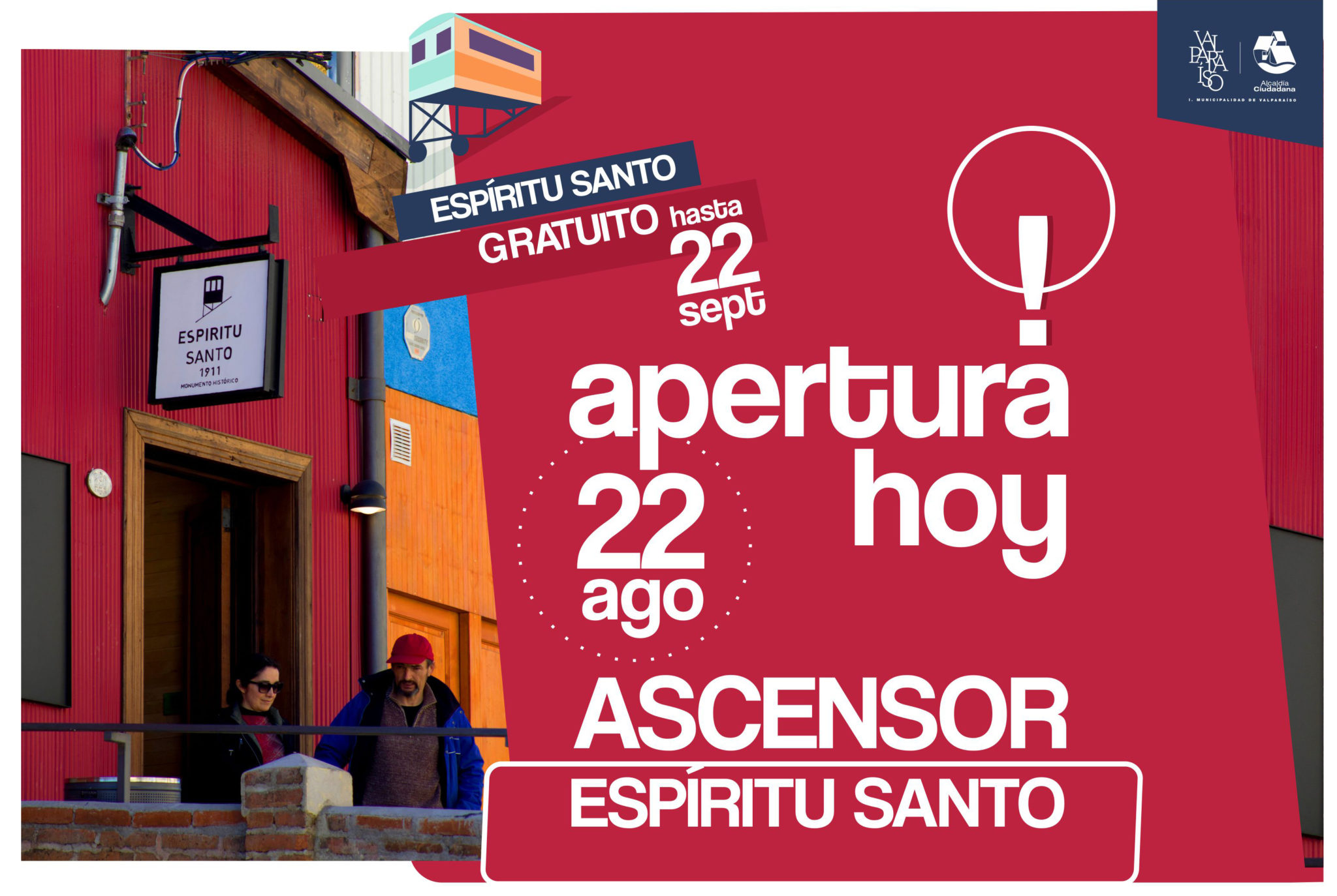Como una forma de fomentar el turismo y los recorridos por el tradicional barrio porteño, la Municipalidad de Valparaíso dispuso gratuidad por un mes en este medio de transporte. Es decir, hasta el domingo 22 de septiembre el elevador funcionará de manera gratuita, lo que calza con las celebraciones de fiestas patrias, permitiendo tanto a porteños como turistas recorrer atractivos tan interesantes como lo son el Museo a Cielo Abierto, la Plaza de los Poetas y la Casa de Pablo Neruda, entre otros