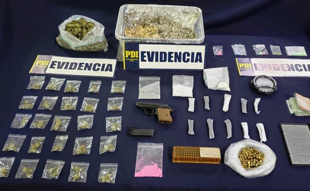 La PDI, tras efectuar una serie de diligencias investigativas, estableció que uno de los imputados comercializaba diferentes tipos de sustancias ilícitas a través de redes sociales, acudiendo hasta el lugar donde se concretaría la venta de éxtasis, llegando acompañado de otra persona, que al ser detenido mantenía gran cantidad de cannabis oculta en sus vestimentas, mientras que el sujeto investigado tenía en su domicilio un arma, municiones y distintas variedades de droga.