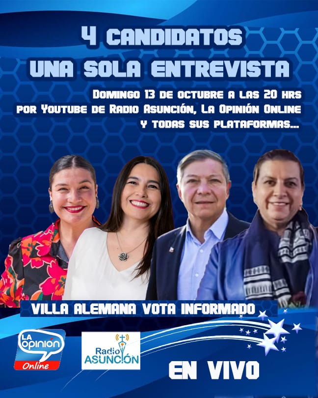 El programa “Villa Alemana vota informado”, organizado por Radio Asunción y La Opinión Online, será transmitido en vivo y en directo por YouTube.