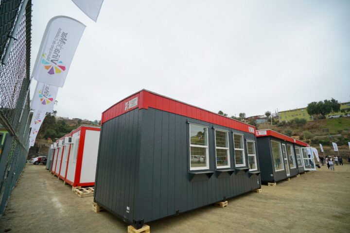 Las estructuras fueron donadas por la familia Luksic y recibida por la alcaldesa Macarena Ripamonti a nombre del Municipio de Viña del Mar, que operará el centro de logística, acopio y atención para los vecinos damnificados, que funcionará por un período mínimo de tres meses.