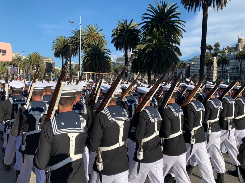 Cerca de 700 efectivos navales pertenecientes a la Academia Politécnica Naval (APOLINAV) de la Armada de Chile, marcharon por las calles del borde costero de Viña del Mar para homenajear a las Glorias Navales, en el marco de los 140 años del Combate Naval de Iquique.