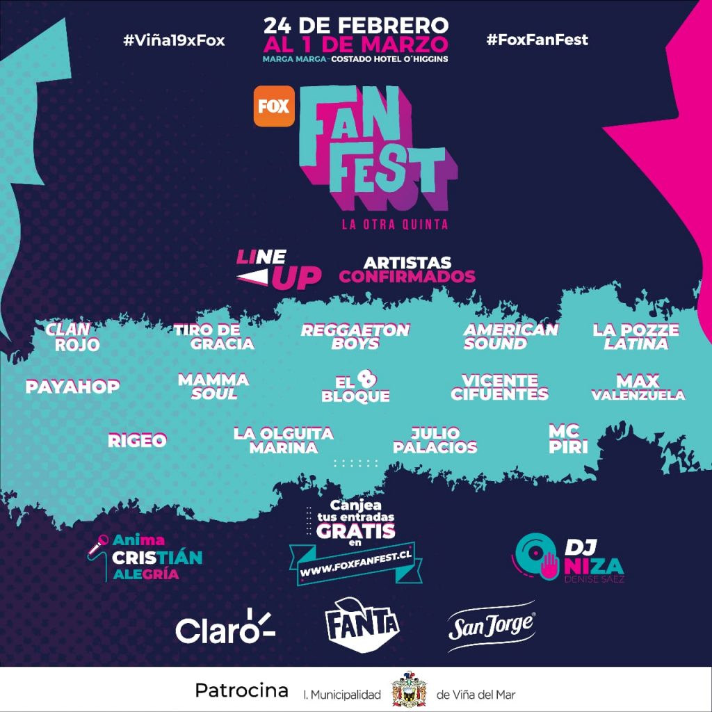 De acuerdo a lo explicado en el lanzamiento, el FOX Fan Fest se suma como un nuevo hito a los panoramas de ciudad de este verano, a través de seis jornadas paralelas al certamen con una excelente parrilla de bandas nacionales y humoristas, entre el 24 de febrero y el 1 de marzo, de 18:30 a 01:00 horas, a un costado del Hotel O’Higgins, en el estero Marga Marga.