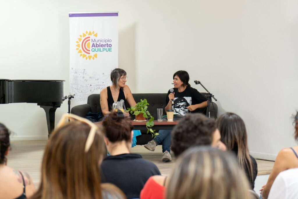 En el marco de su visita a la comuna para participar en el Festival Trotamundos, la vocalista del grupo “Aterciopelados”, Andrea Echeverri, participó en un conversatorio con la alcaldesa de Quilpué, Valeria Melipillan, en el Centro Cultural Daniel de la Vega.